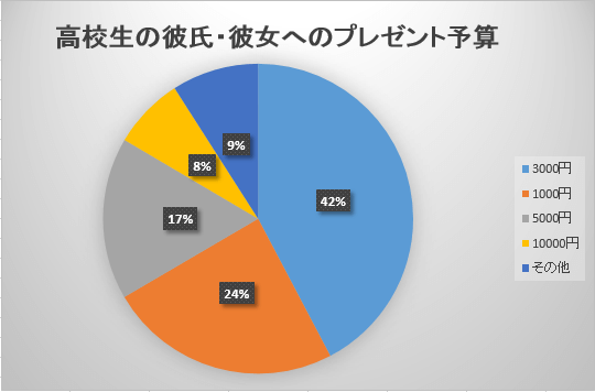 上記のデータを参考にすると、高校生の彼女に贈るクリスマスプレゼントの平均金額は、1,000円~5,000円ぐらいが80%以上を占めています。