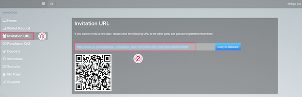 2:赤枠を入力。ユーザーIDはトリニティウォレットの「Invitation URL」というタブを押して、「MAP」に記載されています。