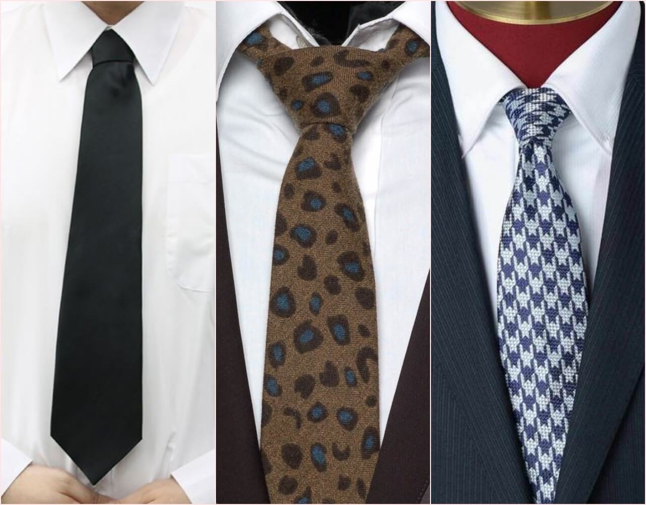 柄のネクタイは、同色系でデザインされたような主張の強く無いアイテムを選ぶようにしましょう。