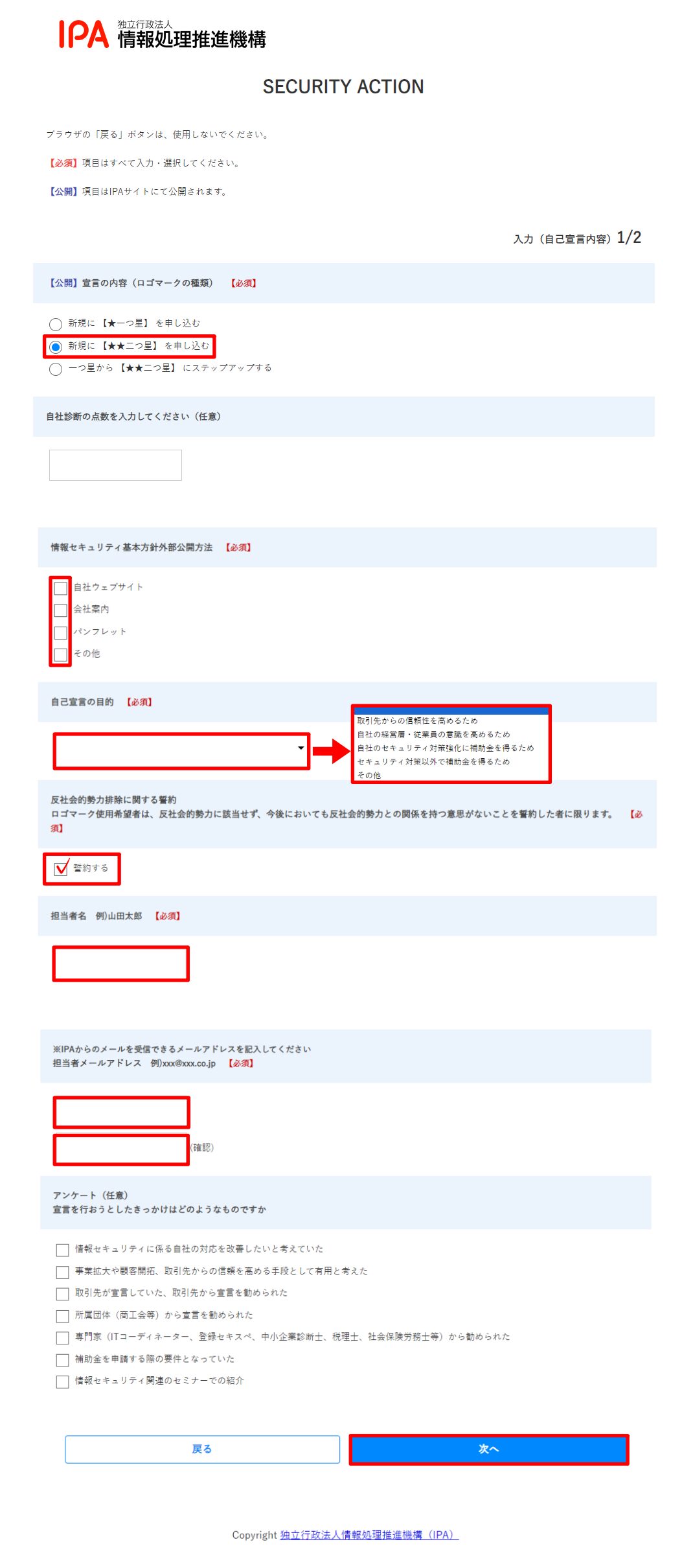 - 担当者メールアドレス:「IPAから送付希望のメールアドレス」を入力