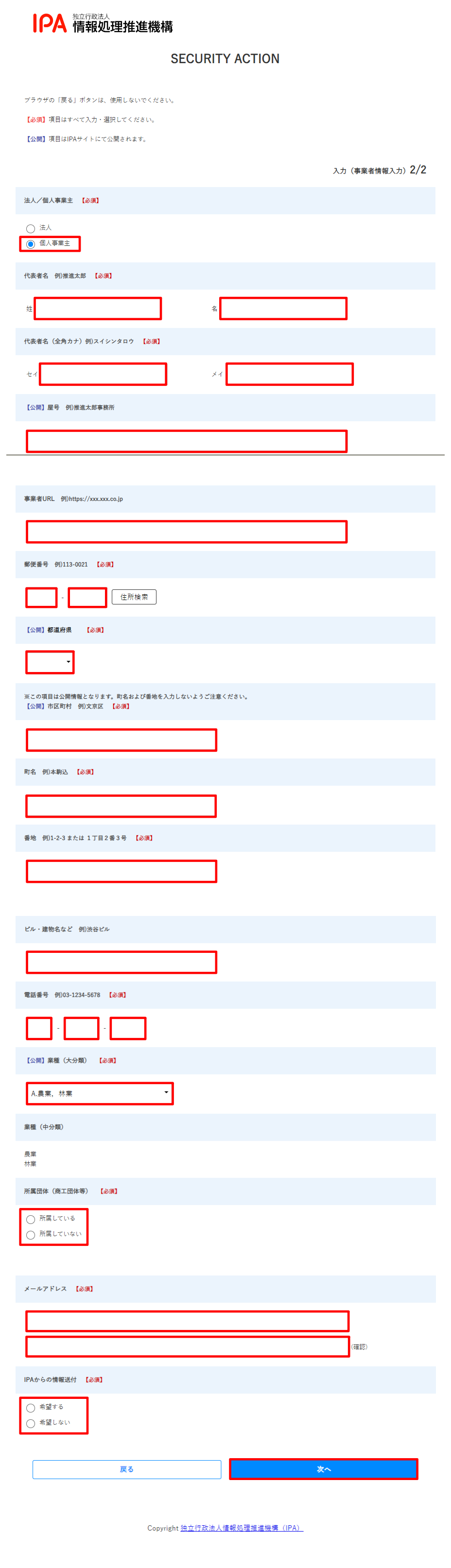 事業者情報入力