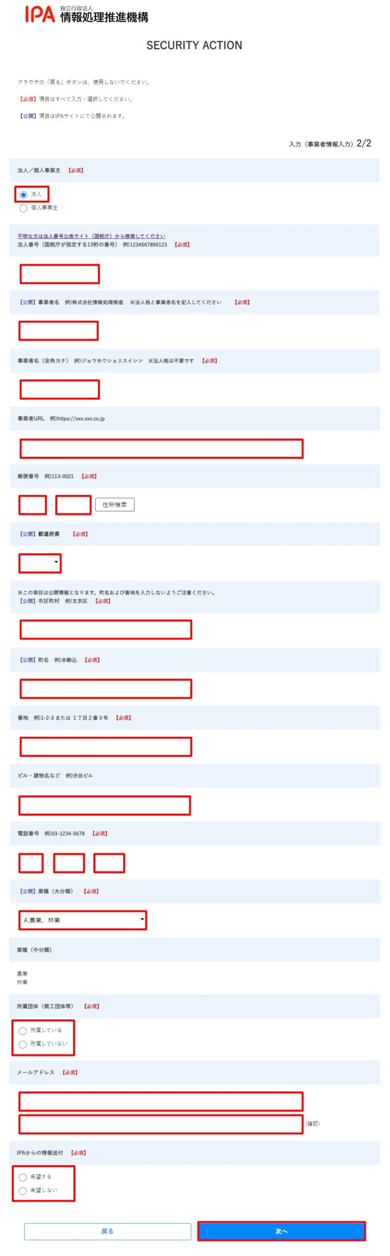 - 業種(大分類):該当する項目を選択